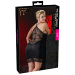 This sexy black mini dress is made out of shiny matte material. The dress looks extremely hot because of its extravagant design, its short, flared skirt part, its extra low-cut neckline, its halterneck and the two horizontal straps at the back. There are also ruffles at the front and the back, which add the finishing touches to this saucy little dress. What a view! 90% polyester, 10% elastane.