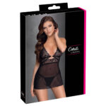 Kort, let blusset babydoll lavet af elastisk, fint powernet med blonder. Underbusten i skinnende gummi forbindes med de dobbelte stropper, der kan justeres foran og bagpå med ringe. En matchende gennemsigtig streng er inkluderet. Materiale: 90% polyamid, 10% elastan.