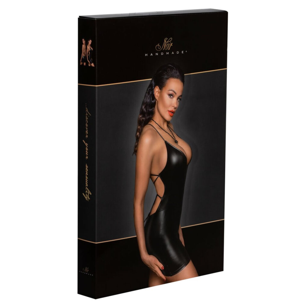 · Snit og materiale: Ekstra kort kjole med snøre i den åbne ryg. Stramt, tyndt snit i et power-wet-look. Dyb halsudskæring foran, smalle stropper krydser bagpå. 76% polyester, 24% elastan, polymerbelægning.· Blød og elastisk: Denne behagelige kjole ser ikke kun uimodståelig ud, men giver også maksimal komfort og bevægelsesfrihed.· Leveringsomfang: 1 x kjole fra Noir. OBS: Denne vare er mindre end normalt – se venligst den separate Noir-størrelsestabel! Hvad er så specielt ved denne kjole?En minikjole med maksimal effekt! Alene det skinnende matte materiale er en fryd for øjet. Og så er der den stramme stil med den sofistikerede snøring bagpå. Mere sexappeal er næsten umuligt! Nyd den vidunderlige fornemmelse og selvfølgelig de blikke, der vil følge dig.