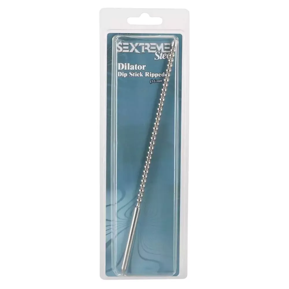 Sort dilator med vibration i 7 trin. Meget elastisk. Samlet længde ca. 19 cm, indføringsdybde 11 cm, Ø 8 mm. Materiale: Silikone med PU-overtræk. Batterier medfølger.