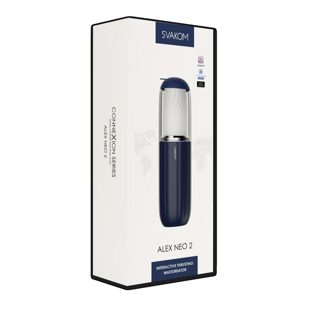 Fuldautomatisk masturbator Alex Neo 2 fra SVAKOM med aftagelig stimuleringsstruktureret sleeve til intensiv penismassage. Nu er den endnu mindre, mere kompakt og lettere, så du kan få et meget behageligt håndjob. Den kraftige motor og batteriet er blevet opgraderet for at give endnu mere pålidelig kontinuerlig effekt. Den sofistikerede push-funktion med 7 intensiteter kan styres direkte på legetøjet med et tryk på en knap (One Button Control) eller via smartphone med FeelConnect 3-appen. Ren fornøjelse med langdistancestyring (når som helst fra et hvilket som helst sted i verden), tilslutning til interaktive 2D-videoer og interaktiv webcam-funktion. Genopladeligt – USB-opladerkabel medfølger. 8,6 cm x 30 cm