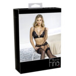 Lang linning med flæse, skridtløs g-streng og 2 armmanchetter i et sæt fra Cottelli BONDAGE. I et ædelt sort mat look med røde kontrastfarvede striber i et taljefremhævende overdellook og sølvfarvede detaljer. Den langlinede bodice med let polstrede bøjlekopper løfter barmen perfekt og præsenterer den offensivt indrammet med stretchstropper. Den udspilede nederdel med flæse, der er åben bagpå, spiller sensuelt omkring hofterne. Stropperne foran har smykkeelementer som ekstra blikfang. Stropperne, decolletestropperne og kroge på ryggen kan justeres. Ved taljebåndet er der i alt 4 ringe til de to medfølgende bløde armmanchetter med tilhørende karabinhagerkæder. Manchetterne kan justeres med velcrolukninger. Den matchende lille g-streng er indbydende åben i skridtet. 90% polyester, 10% elastan.
