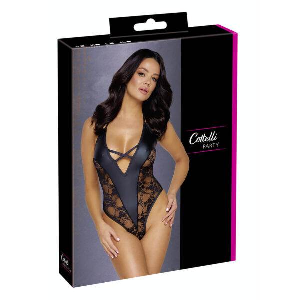 Riobody fra Cottelli LINGERIE i et ædelt mat look med fine blondeindsatser i siderne. Elastisk og blød hele vejen rundt for høj bærekomfort. Dybt tilspidset dekolletage med krydsede strækbånd. Halterneck’en bindes i nakken, ryggen forbliver fri. Ekstra høje benudskæringer viser numsen og benene bedst muligt frem. Med trykknaplukning i skridtet – praktisk og forførende på samme tid. Mat look 90% polyester, 10% elastan, polyurethanbelægning